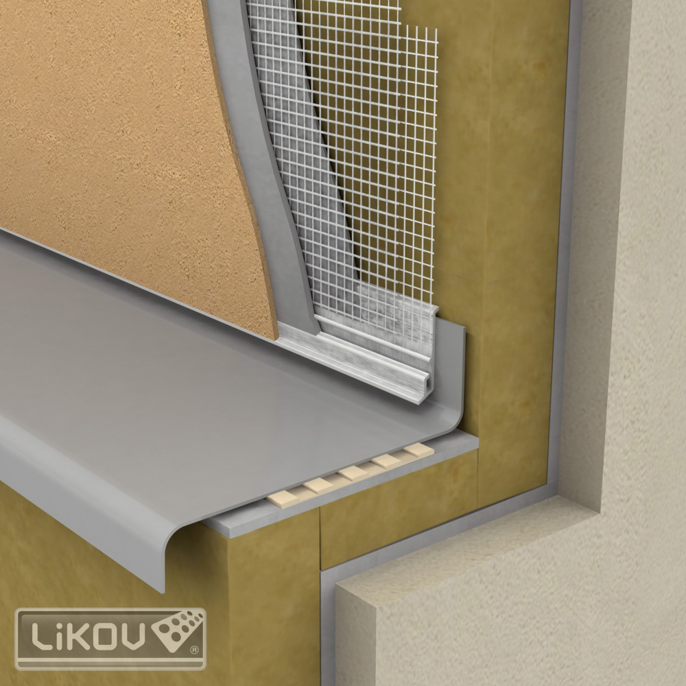 LE-V lišta napojovacia okapnicová so sklovláknitou výstužnou tkaninou pre zaistenie dilatujúceho spoja medzi zakladacou lištou alebo oplechovaním a omietkou v kontaktnom zatepľovacom systéme – ETICS