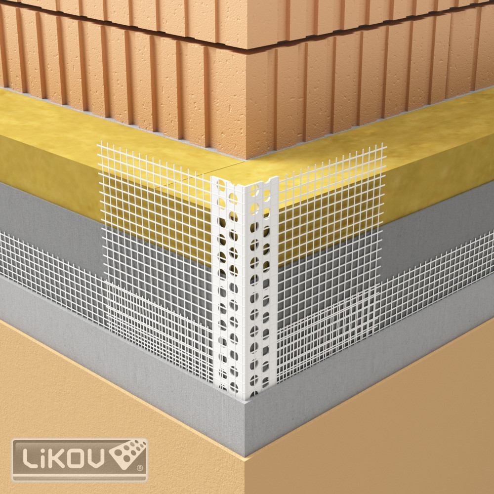 LK profil PVC so sklovláknitou výstužnou tkaninou pre spevnenie a ochranu všetkých rohov, hrán a ostenia okien alebo dverí v kontaktnom zatepľovacom systéme – ETICS.