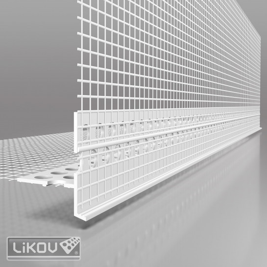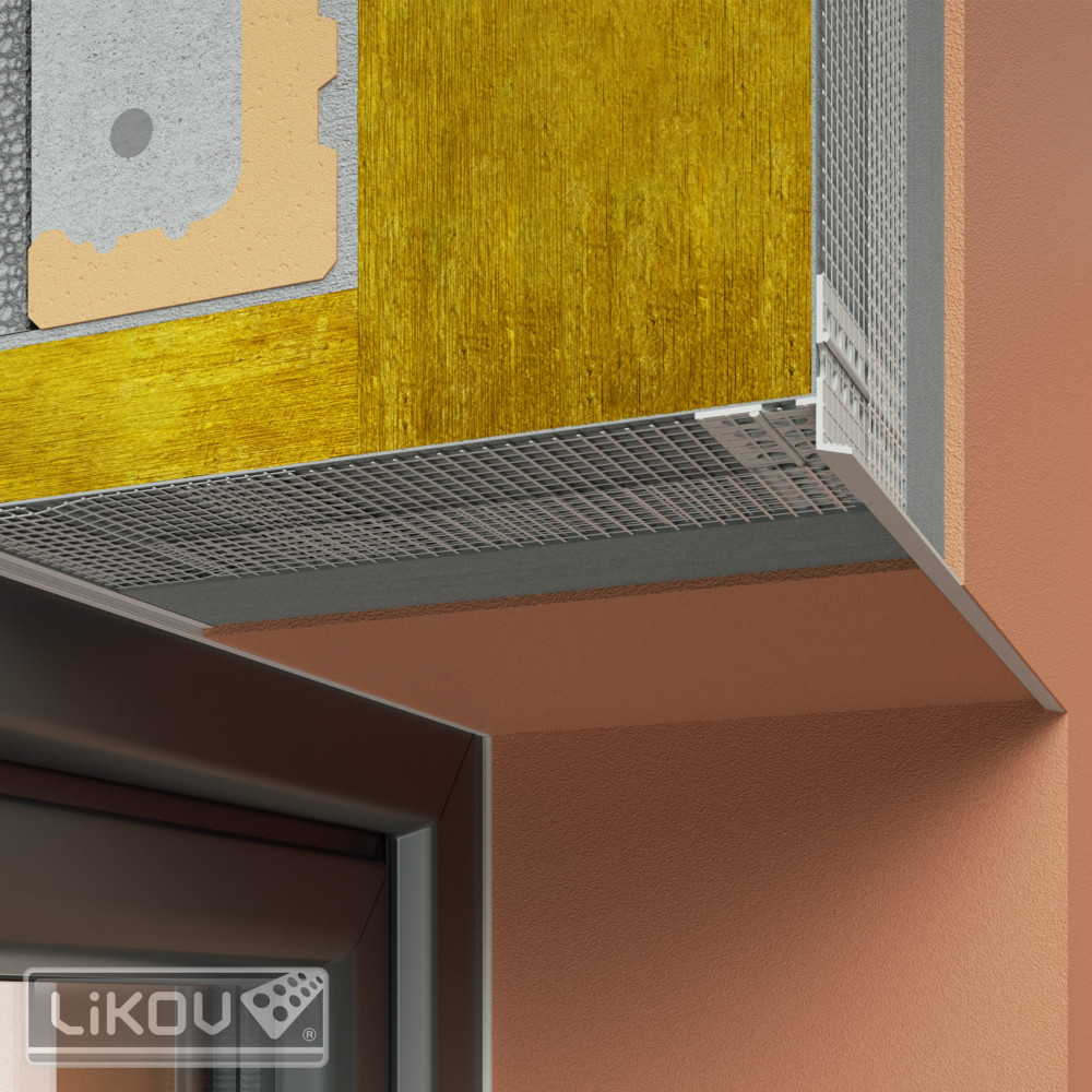 LTDU lišta s nepriznanou okapnicou (podomietkovou) a sklovláknitou výstužnou tkaninou pre začistenieomietky a zaistenie zvodu vody na hornom ostení stavebných otvorov v kontaktnom zatepľovacom systéme -ETICS
