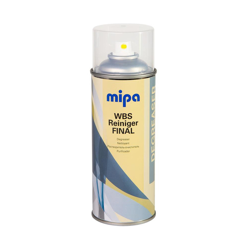 Mipa odmasťovač na vodnej báze (WBS Reiniger Final Spray) je určený na čistenie a odmastnenie lakovaných plôch pred nanášaním vrchného laku. Čistí veľmi účinne a nevytvára žiadne stopy viditeľné v laku. Má antistatický účinok, ktorý je dôležitý pri lakovaní plastových dielcov.