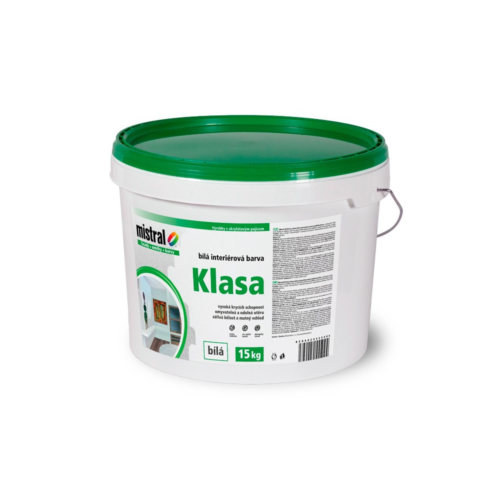 Mistral Klasa je interiérová vysoko biela umývateľná farba s výbornou krycou schopnosťou v jednej vrstve, vhodná na sadrokartón, omietky, betónové panely, štrukturované a sklovláknité tapety.