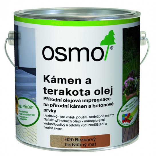 Bezfarebná hodvábne matná prírodná olejová impregnácia pre porézne materiály, ktorá nezanecháva povrchový film. Osmo Olejom na kameň a terakotu ošetrené plochy sú vodoodpudivé a menej náchylné na znečistenie a tvorbu škvŕn. Pri takto ošetrených poteroch a betónoch sa významne znižuje tvorba prachu.