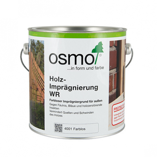 Osmo impregnácia dreva WR je bezfarebný ochranný náter na drevo, na použitie v exteriéri. Účinne pôsobí ako prevencia pred škodlivými organizmami, zabraňuje hnilobe dreva, modraniu dreva a napadnutiu drevokazným hmyzom. Umožňuje drevu dýchať, obmedzuje napúčanie a vysušovanie dreva. Počas aplikácie má náter slabý zápach a po sušení ostáva bez zápachu.