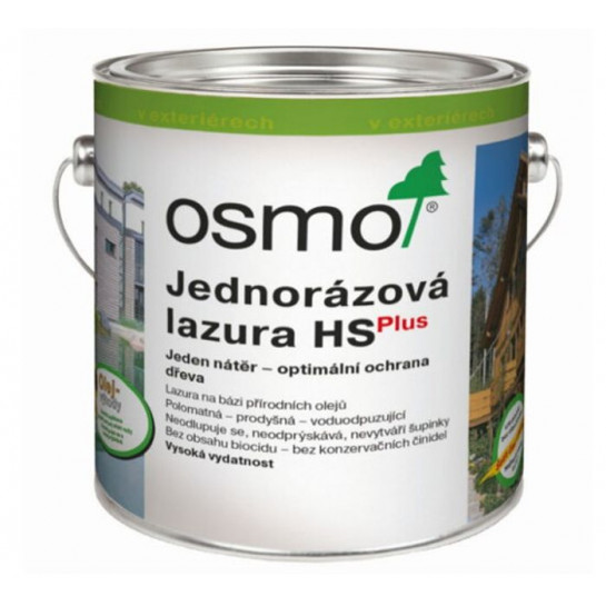 OSMO – JEDNORAZOVÁ LAZÚRA HS PLUS je dekoratívna, matná, povrchová úprava. Náter nepraská a neodlupuje sa. Je vodoodolný, obmedzuje napučiavanie a vysúšanie dreva. Je odolný voči poveternostným podmienkam a UV žiareniu. Aplikuje sa jednoducho, bez základovania a prebrusovania – žiadny jemný prach.