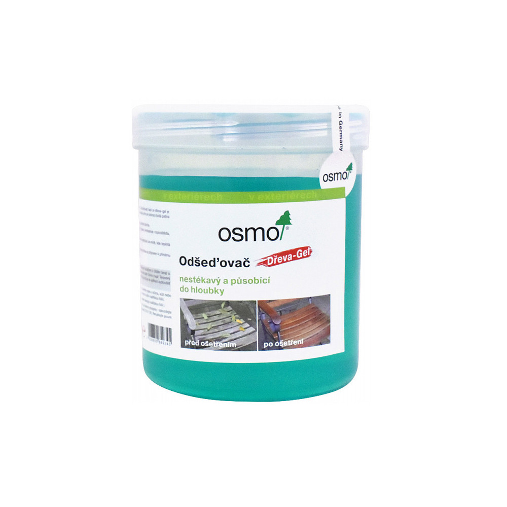 OSMO odšeďovač dreva gél je vysoko účinný čistiaci gél, na očistenie zašednutého dreva vo vonkajších priestoroch. Odstraňuje šednutie dreva, je hustej konzistencie a preto nesteká a nekvapká. Dá sa ľahko rozotierať, aj na zvislých plochách, nesteká. Gél pôsobí do hĺbky, koncentrát špeciálne vyvinutý na bezproblémové odstránenie zeleného povlaku / porastu na ošetrených aj neošetrenýchpovrchoch dreva.