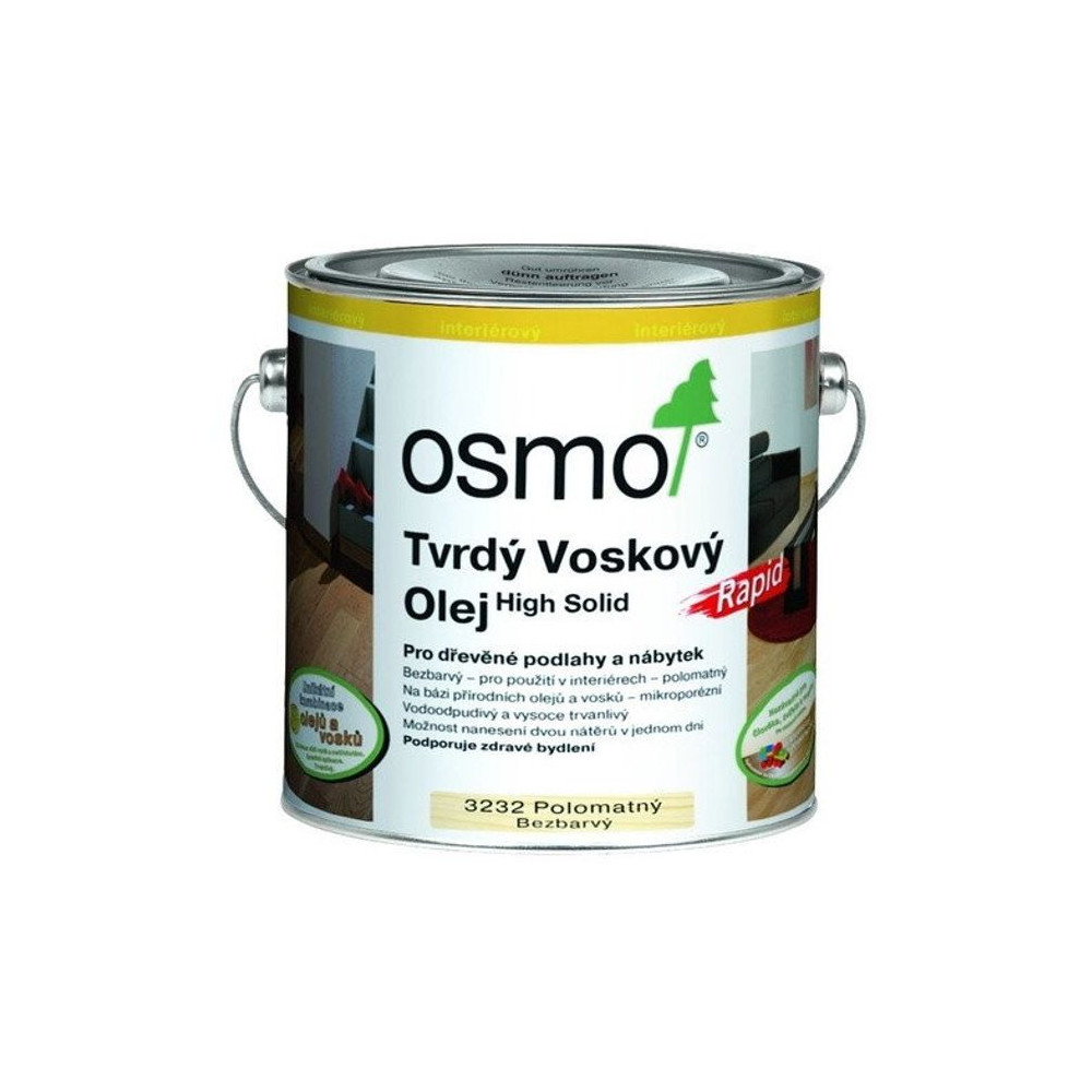 OSMO – TVRDÝ VOSKOVÝ OLEJ RAPID je rýchloschnúci náter na podlahy so špeciálnou povrchovou tvrdosťou, ktorý jedinečne kombinuje výhody prírodných olejov voskov v jednom výrobku. Osmo Tvrdý voskový olej Rapid je vodoodpudivý a oderu odolný a vytvára na dotyk príjemný povrch. Jednoduchá aplikácia bez základovania a medzibrúsenia šetrí čas aj peniaze.