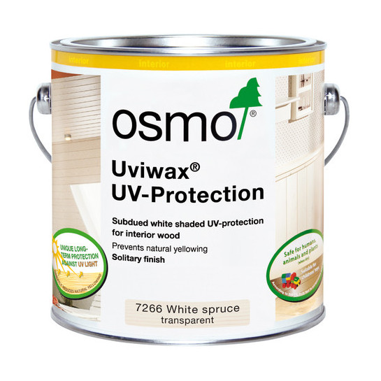 OSMO Uviwax® UV ochrana je vosková povrchová úprava pre použitie v interiéroch. Chráni lignín v dreve pred škodlivým UV žiarením. Prirodzené žltnutie dreva je výrazne znížené a prirodzený tón dreva sa zachováva dlhšie. Osmo Uviwax® UV ochrana je vodoodpudivý a oderu odolný a vytvára na dotyk príjemný povrch. Náter nepraská, neolupuje sa. Suchý povrch je bezpečný pre ľudí, zvieratá a rastliny podľa DIN 53 160. Náter je vhodný pre detské hračky EN 71.3.