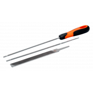 Sada obsahuje:2 x 200 mm kruhový pilník s priemerom 4 mm na reťazové píly s delením 3/8" RG 1 x 150 mm plochý pilník na reťazové píly