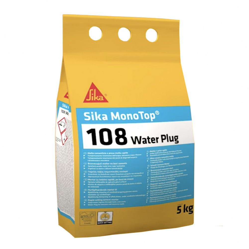 Sika MonoTop®-108 WaterPlug je rýchlo tuhnúca cementová malta na zastavenie výronov vody v betónových a tehlových stenách.