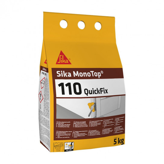 Sika MonoTop®-110 QuickFix je 1-komponentná, rýchlo tuhnúca hotová malta na báze cementového pojiva a vybraného plniva, s využitím ako kotviaca malta charakterizovaná rýchlym vývinom počiatočnej pevnosti.