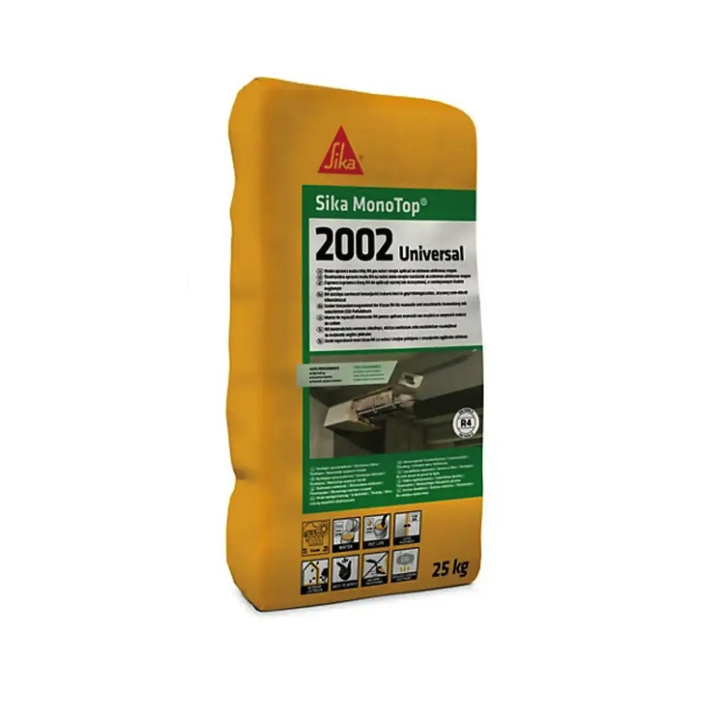 Sika MonoTop®-2002 Universal je 1-komponentná cementová reprofilačná malta, ktorá spĺňa požiadavky triedy R4 podľa normy STN EN 1504-3: Výrobky a systémy na ochranu a opravu betónových konštrukcií - časť 3: Opravy so statickou funkciou a bez statickej funkcie.