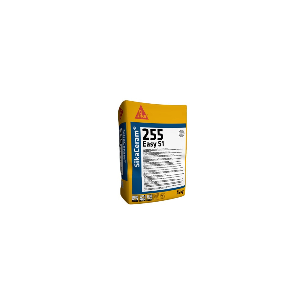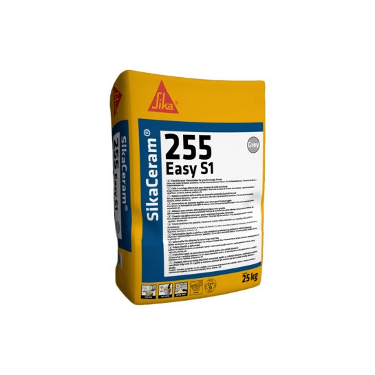 SikaCeram®-255 Easy S1 je deformovateľné lepidlo na báze cementu na keramické obklady a dlažby, aj veľkých rozmerov. Môže byť použité vo vrstvách do hrúbky 10 mm. SikaCeram®-255 Easy S1 je vhodné na obklady stien a podláh v interiéri aj exteriéri, stredná záťaž. Označenie CE podľa EN 12004 trieda C2 TE S1.