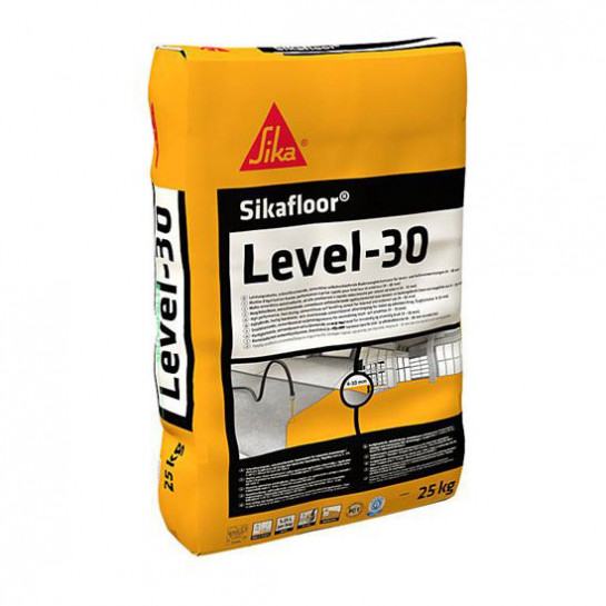 Použitie: Sikafloor® Level-30 je podlahový samonivelačný poter na vyrovnanie a zahladenie betónových podláh v hrúbke medzi 4 - 30 mm v jednom pracovnom kroku. Sikafloor® Level-30 je použiteľný ako poter pre priemyselné prevádzky s uzavretím vrchným náterom PU alebo EP živicou pre stredné až vysoké zaťaženie (ťažká prevádzka + vozík, paletový vozík s nárazovým zaťažením). Sikafloor® Level-30 je tiež vhodný na vyplnenie, vyrovnanie a zahladenie vhodných podkladov pred pokládkou parkiet, keramickej dlažby, bezškárovej podlahy na báze živice, textilných a elastických podlahových krytín. Sikafloor® Level-30 je použiteľný ako poter do exteriéru, ak je prekrytý alebo zapečatený uzatváracím náterom.