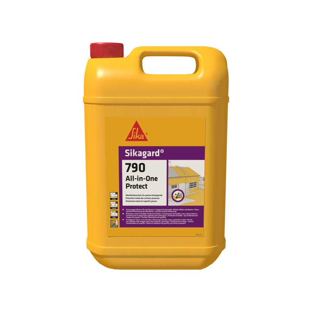 Sikagard®-790 All-in-One Protect je ochranná impregnácia vyvinutá na VŠETKY typy pórovitých minerálnych podkladov proti vnikaniu kvapalín na báze vody a olejov a na ochranu alebo výrazné zníženie zafarbenia týchto materiálov. Sikagard®-790 All-in-One Protect nevytvára na povrchu film a preto je úplne neviditeľná. Sikagard®-790 All-in-One Protect umožňuje obojsmernú difúziu vodnej pary a vo výsledku si ošetrené povrchy zachovávajú svoje normálne hydrotermálne a vlhkostné správanie. Sikagard®-790 All-in-One Protect tiež umožňuje jednoduchšie odstraňovanie graffity, ktoré sú nastriekané na povrchoch (vhodnými čističmi).