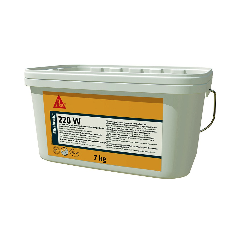 Sikalastic®-220 W je 1-komponentná tekutá vodonepriepustná membrána na vodnej báze do vlhkých miestností pripravená ihneď k použitiu. Vytvára vodonepriepustnú povrchovú úpravu pripravenú na pokládku dlažby. V kombinácii s vhodnými páskami, primermi a lepidlami na dlažbu spĺňa požiadavky podľa ETAG 022:1.