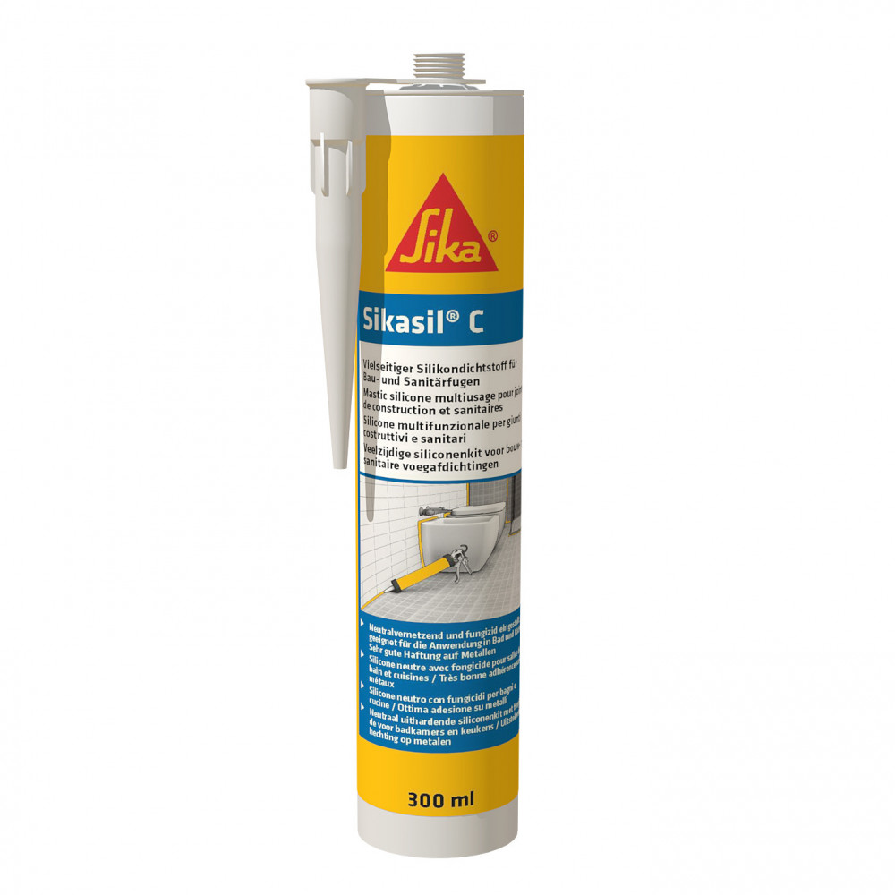 Sika Sikasil C je silikónový tmel pre konštrukčné a sanitárne použitie. 1-komponentný, neutrálne vytvrdzujúci, nekorozívny, mnohoúčelový tmel na tesnenie mnohých typov škár. Aplikuje sa bez primera a má dobrú prídržnosť k väčšine stavebných materiálov. Umožňuje UV odolné, elastické a flexibilné utesnenie proti vode, zabraňuje vzniku plesní. Spätná elasticita ±25 %.