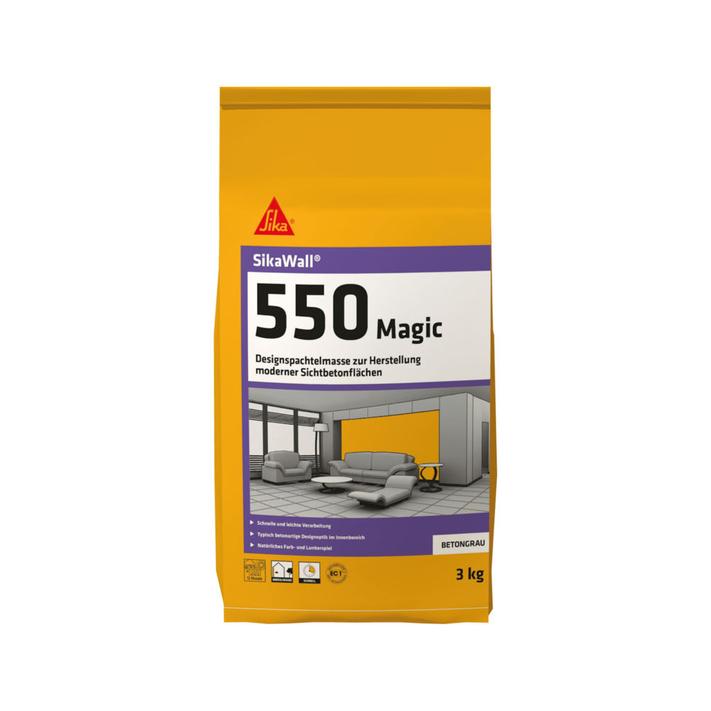 Použitie: Na zhotovenie moderného optického vzhľadu podobného pohľadovému betónu so škárami po debnení. Škáry po debnení vznikajú vďaka použitej fólii, ktorá sa prikladá na čerstvú maltu. SikaWall®-550 Magic je vyvinutá na použitie v interiéri.