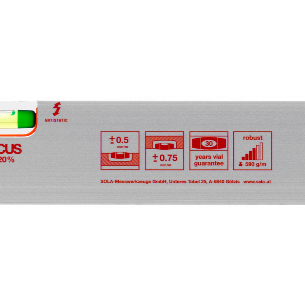 | Tolerancia merania v štandardnej polohe | 0,50 mm/m (0 029°) |
