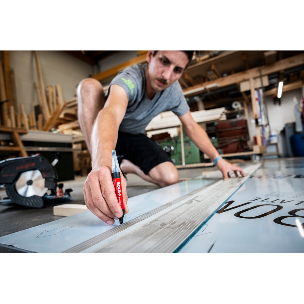 Vodotesná a rýchlo zasychajúca náplň spoľahlivo píše na hladkých a suchých materiáloch, ako je sklo, kov, kameň a plast, bez toho aby dochádzalo k rozmazaniu