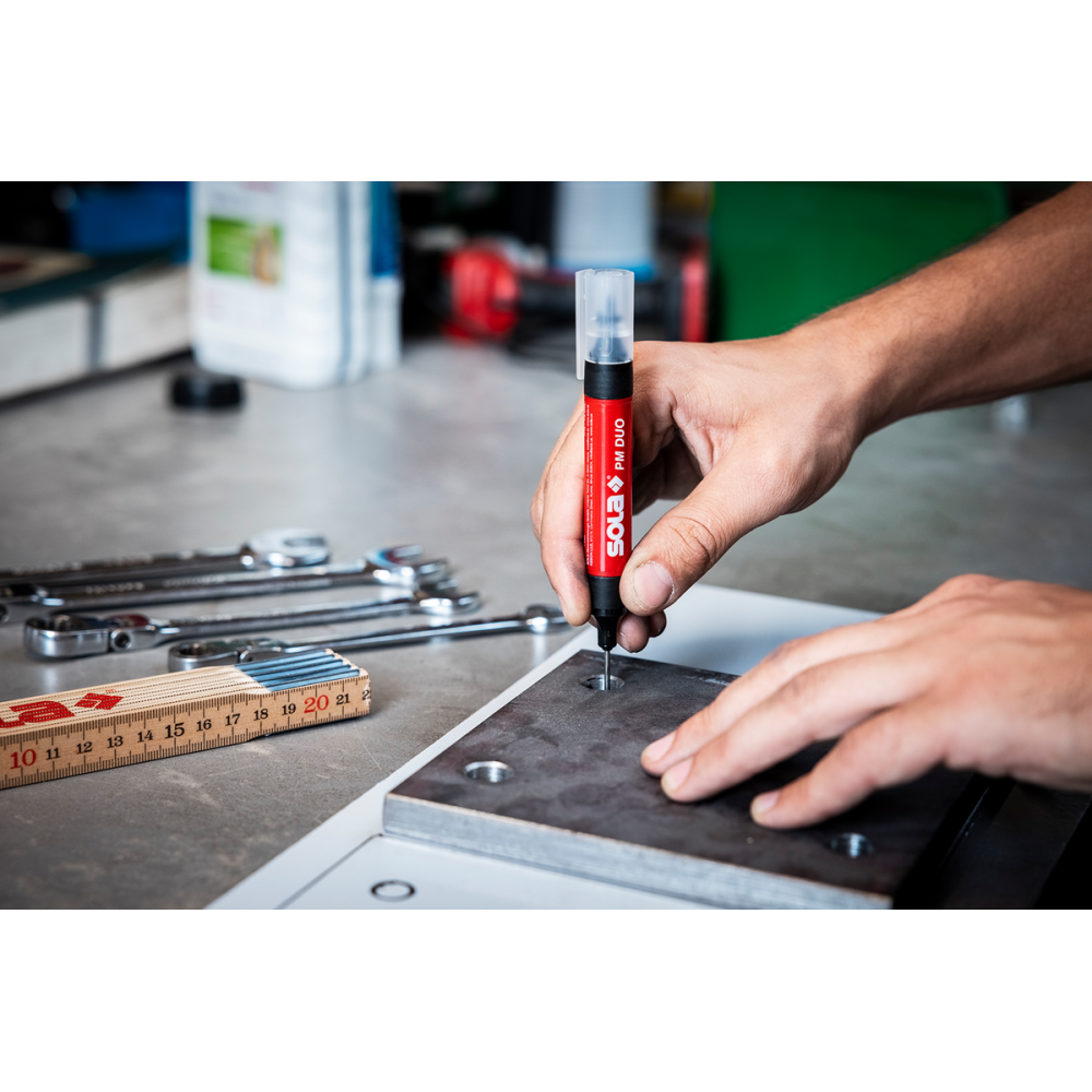 Jednoduché značenie vŕtaných otvorov a ťažko prístupných miest vďaka tenkej špičke z ušľachtilej ocele