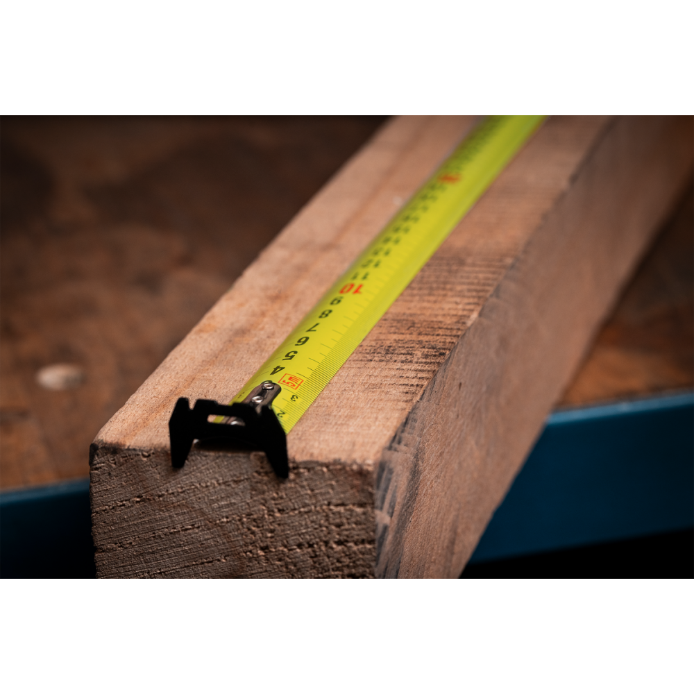 Nylonem potažené pásmo svinovacího metru s oboustrannou stupnicí a dvojitým koncovým háčkem