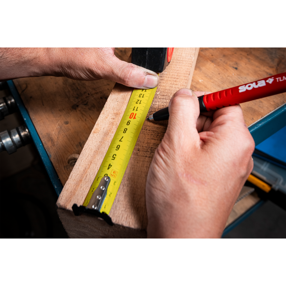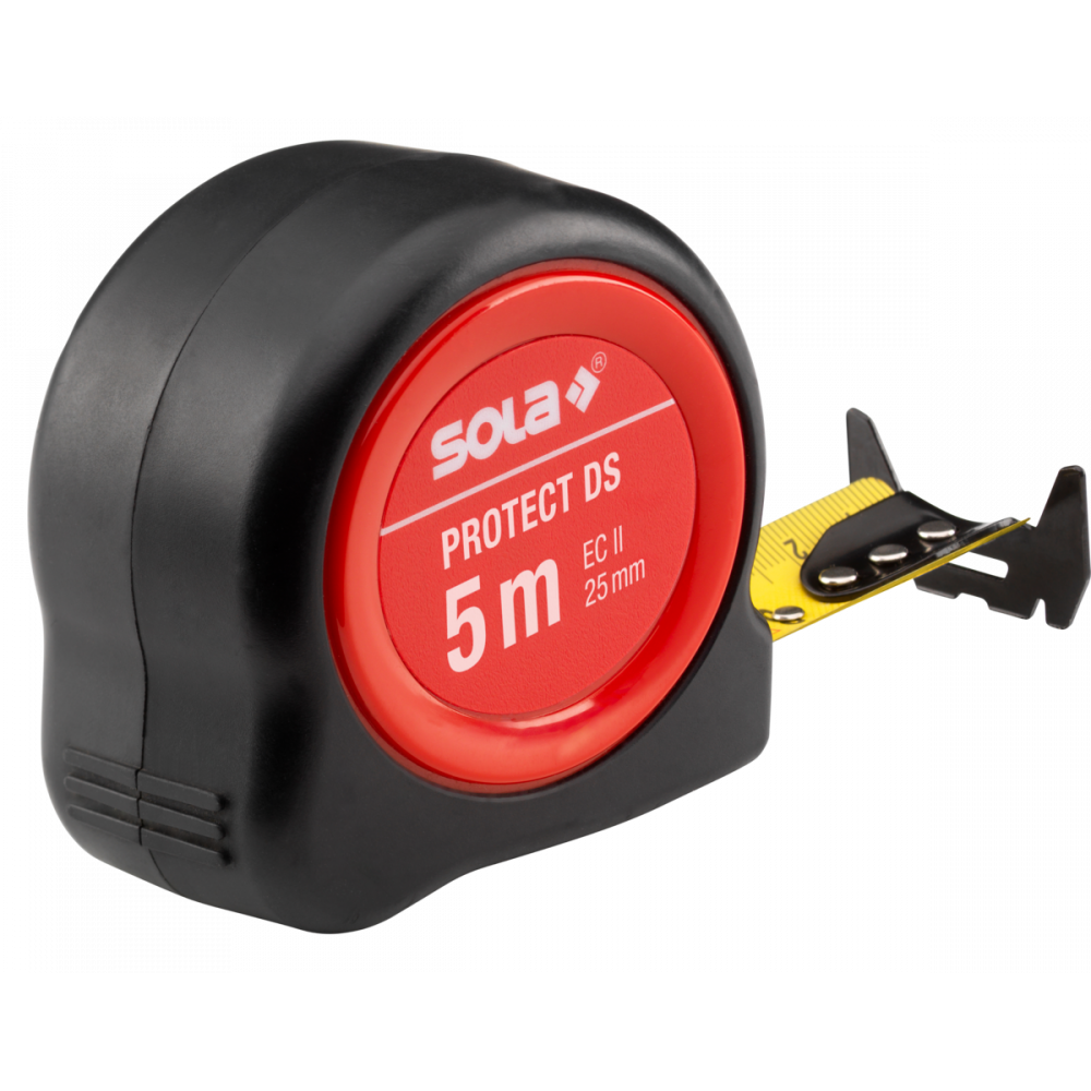 Svinovací metr PROTECT DS kombinuje inovativní technologii s maximální uživatelskou přívětivostí. Jeho oboustranná měřicí stupnice - vodorovná na přední straně a svislá na zadní straně - umožňuje přesné měření v jakékoli poloze. Obzvláště praktický je dvojitý koncový háček, který umožňuje přesné měření vnitřních i vnějších rozměrů.
