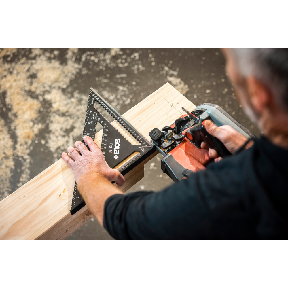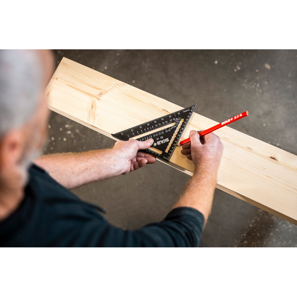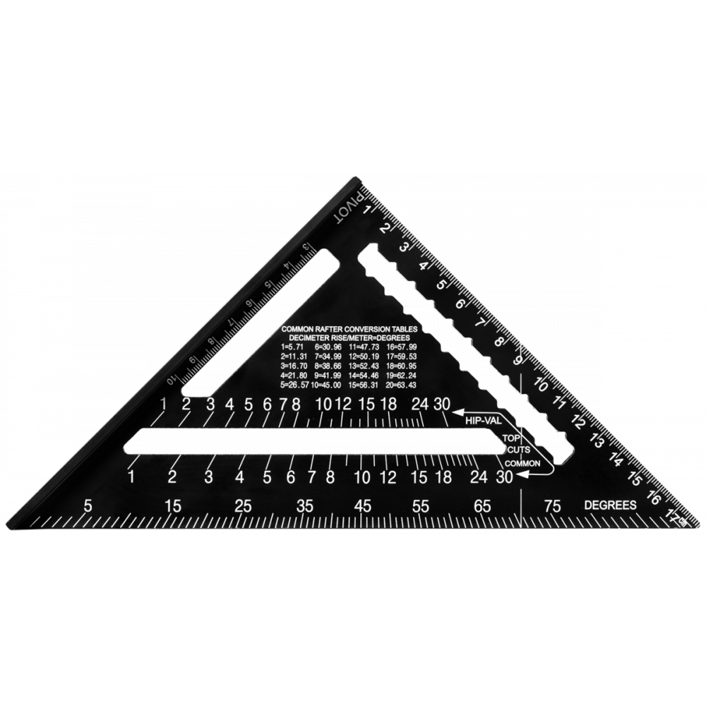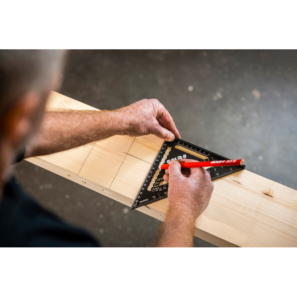 • Multifunkčný: pravítko, príložný uholník, pokosový uholník, uhlomer, značkovacia pomôcka, vodítko píly a krokvový nôž