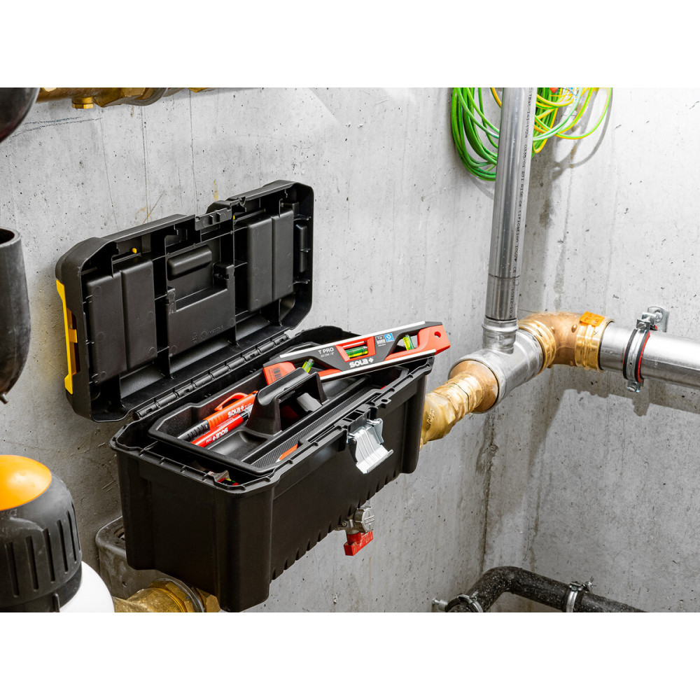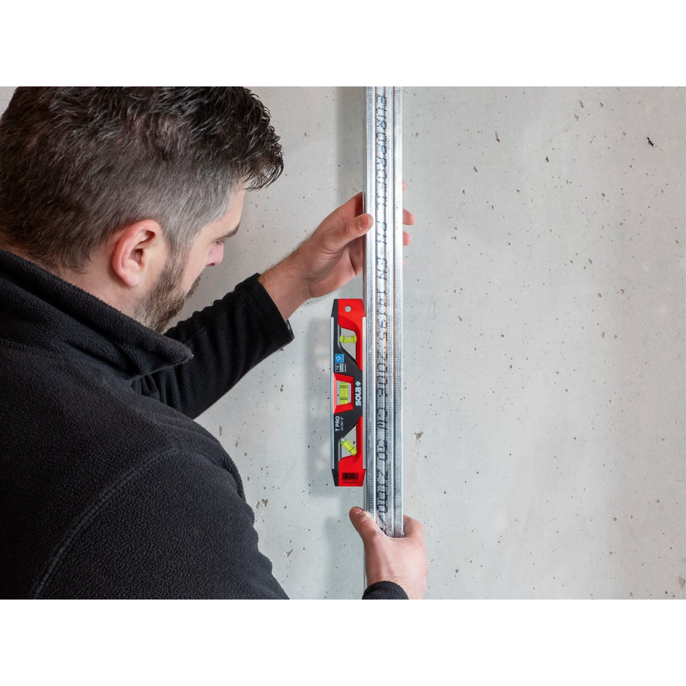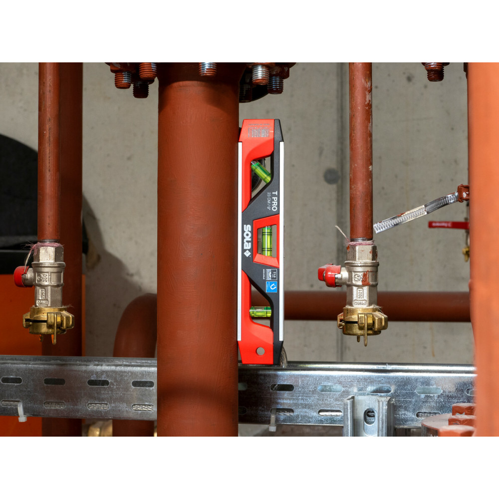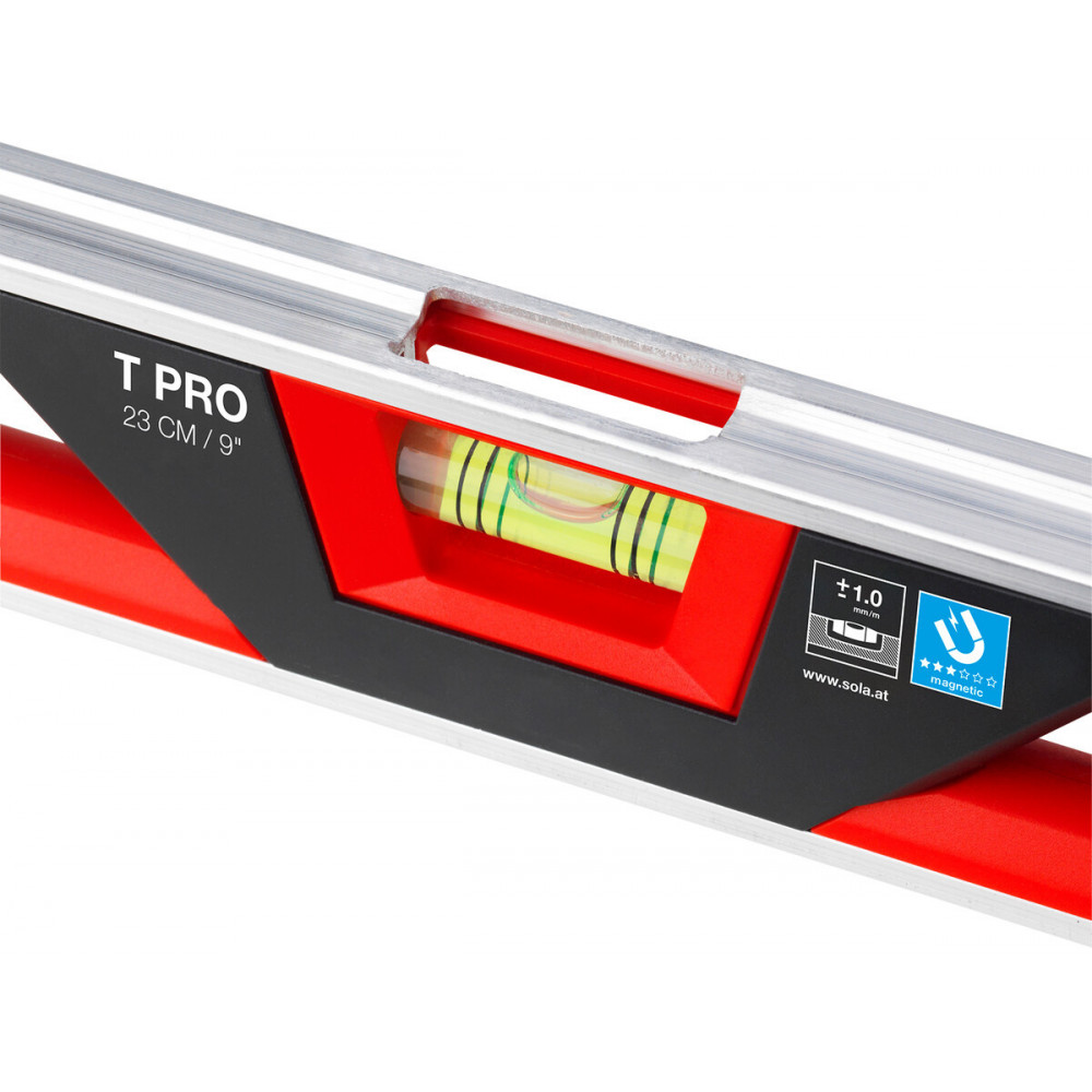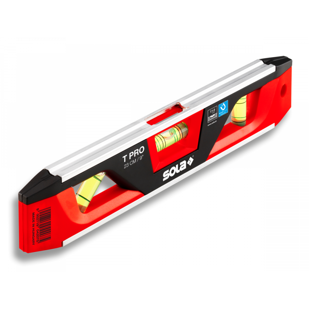 T PRO je ľahká, skladná torpédová magnetická vodováha, ktorá je vďaka svojej kompaktnej konštrukcii vhodná na množstvo meracích úloh. Vybavená tromi libelami umožňuje meranie vo vodorovnej polohe, vo zvislej polohe a tiež pod uhlom 45 stupňov pri presnosti merania +/-1 mm/m. Extra veľké vybrania pre libely pritom zaisťujú optimálne odčítanie hodnôt.
