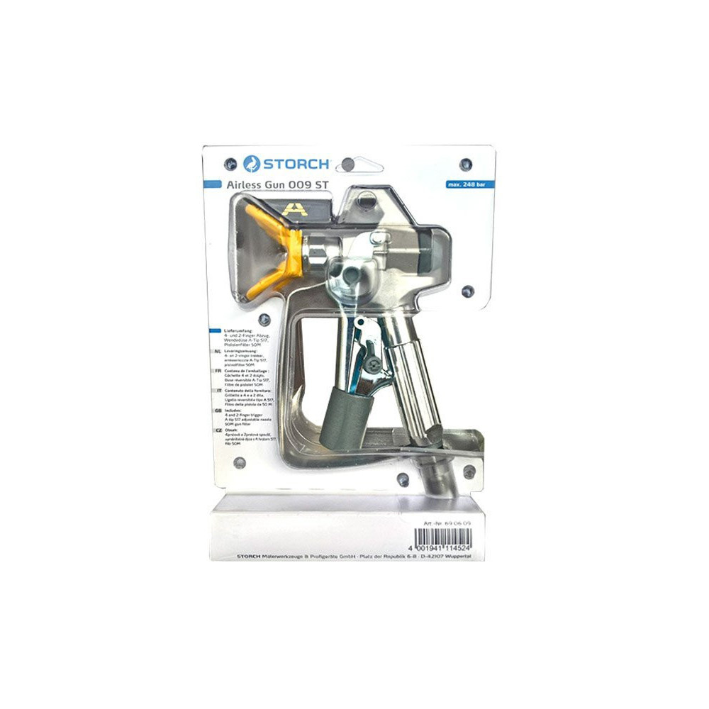Balenie obsahuje:1 x Storch Airless ST 550 1 x Storch Airless hadica 1/4“ 15 m 1 x Storch Airless pištoľ 009 ST vrátane držiaku trysky 1 x Storch Airless tryska 517 1 x Set pre čistenie a údržbu 1 x Vstavaný systém pre rýchlu výmenu QuickReload 1 x QuickClean adaptér pre rýchlé čistenie 1 x Úložná taška pre príslušenstvo