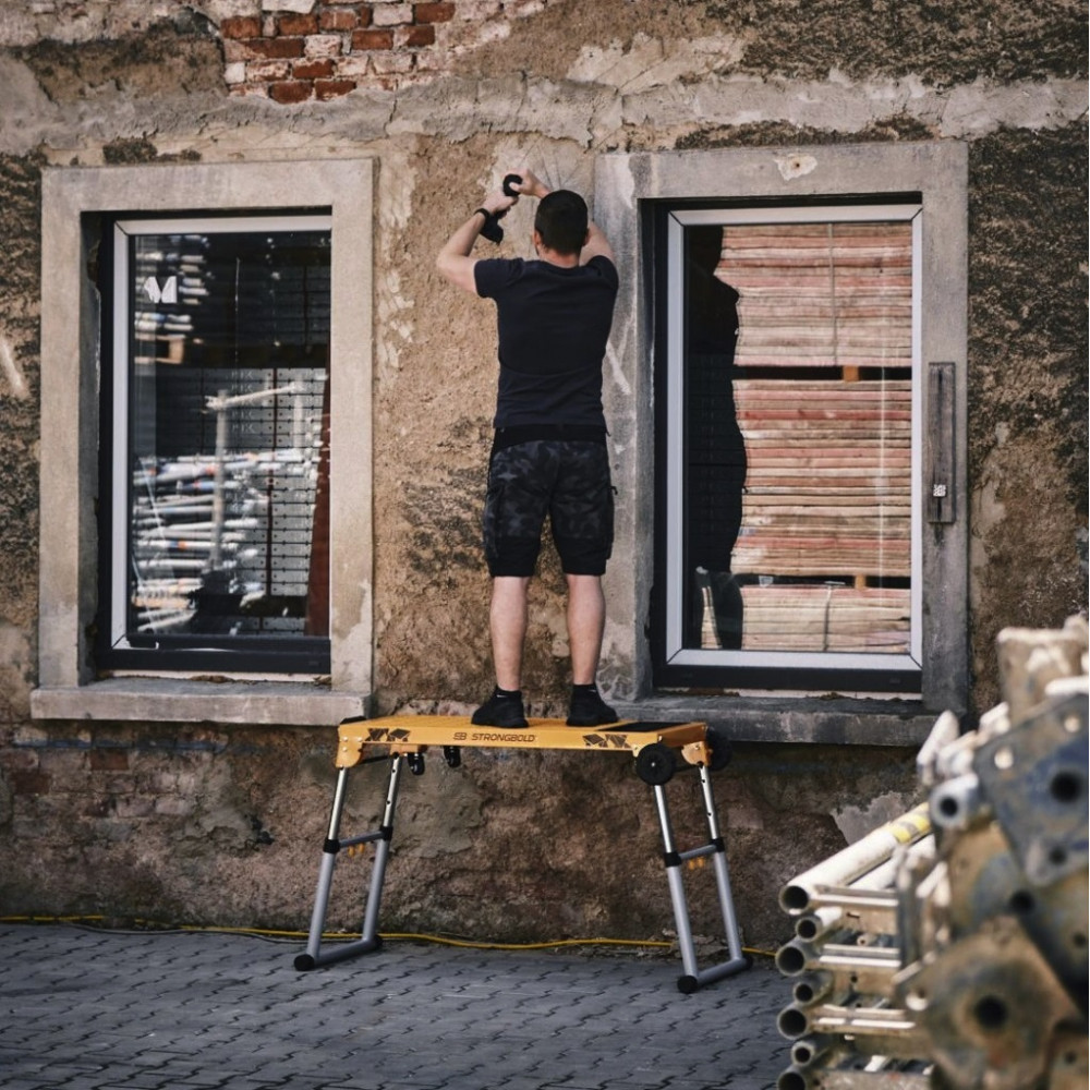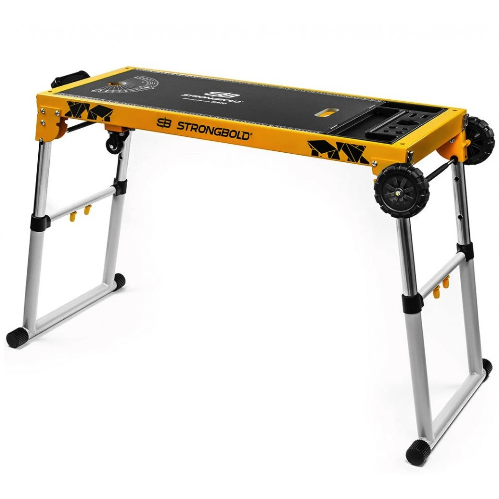 StrongBench B910 je skutočná multifunkčnosť od STRONGBOLDu. 4 veľké funkcie v jednom - výškovo nastaviteľný stôl s MDF pracovnou otočnou doskou, výškovo nastaviteľná plošina s nosnosťou až 150 kg a pojazdné pracovné lehátko. Po pripevnení značkového doplnku STRONGBOLD® StrongRail B920 máte navyše pevný rám s platformou pre pokosovú pílu. Jednoduché zloženie a nastavenie výšky. Po otočení pracovnej dosky roštom nahor získate zvýšenú stabilnú plošinu, na ktorej si vymeníte napríklad žiarovku v lustri alebo vyvŕtate dieru do steny. Keď zložíte nohy pod rám, získate pojazdné montážne lehátko na protišmykových kolieskach. Vyznačená meracia stupnica a uhlomer priamo na pracovnej doske. Odkladací stolček a organizér zabudovaný priamo do konštrukcie stola. Poistky proti zloženiu a nastavenie výšky pre bezpečnú manipuláciu. Rukoväť pre ľahký prevoz.