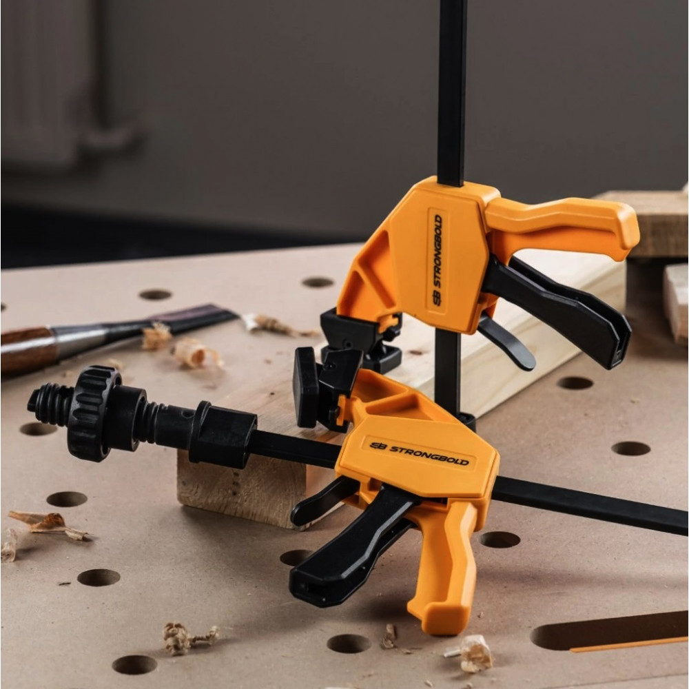 Pomocou týchto svoriek od značky STRONGBOLD® si ľahko pripevníte materiál k akémukoľvek pracovnému stolu s otvormi s priemerom 20 mm. Odolná ale ľahká svorka, ktorá je ideálna pre menšie projekty do veľkosti materiálu maximálne 250 mm. Kĺbová čeľusť opatrená gumovou ochrannou pätkou.