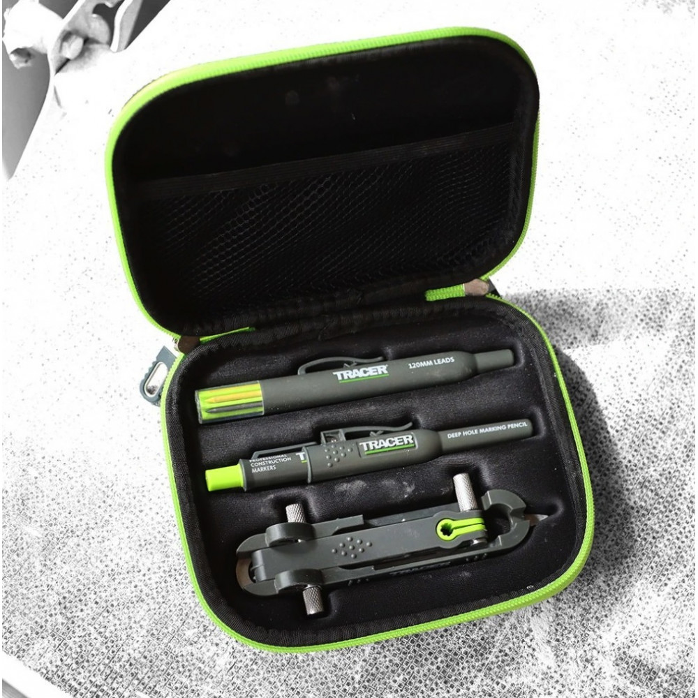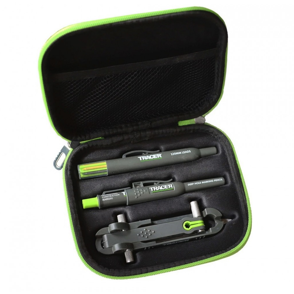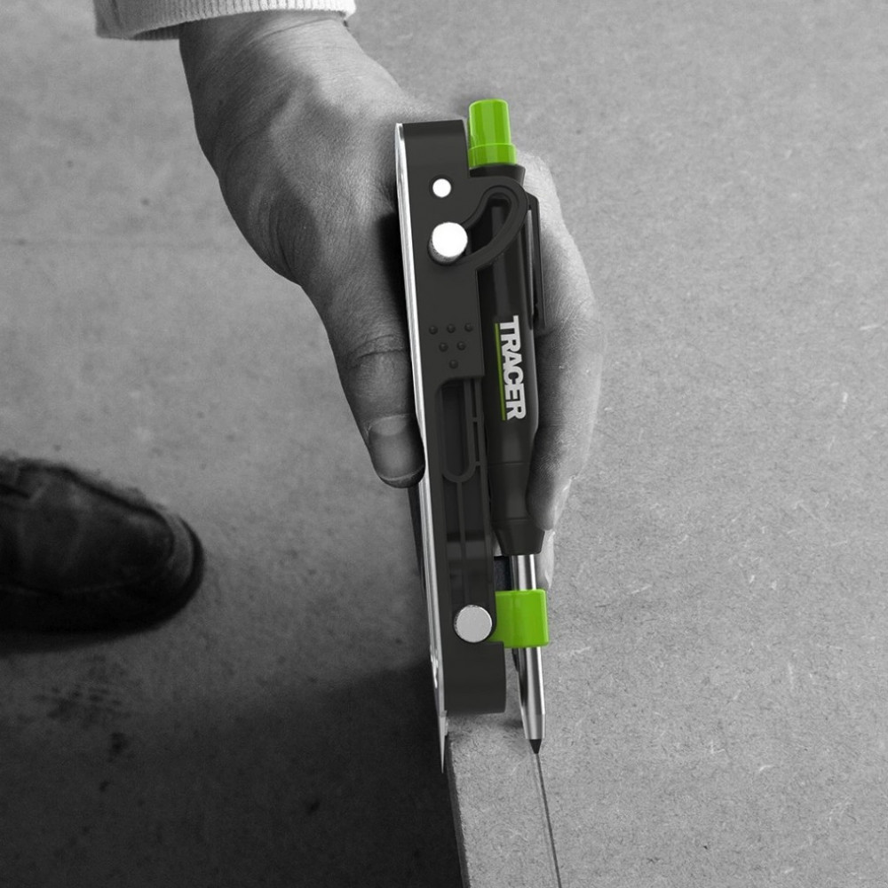 Multifunkčná rysovacia pomôcka od britskej značky Tracer, ktorá Vám umožní prenos značenia či hrán. Ideálna na rysovanie na všetky druhy povrchov. Pomôcka má multifunkčné uchytenie, ktoré vám umožní upevniť nielen ceruzku Tracer ADP2, ale aj iné. Súčasťou balenia je rysovacia pomôcka, stolárska ceruzka a náhradné tuhy. Vyrobené z kovu a robustného plastu.