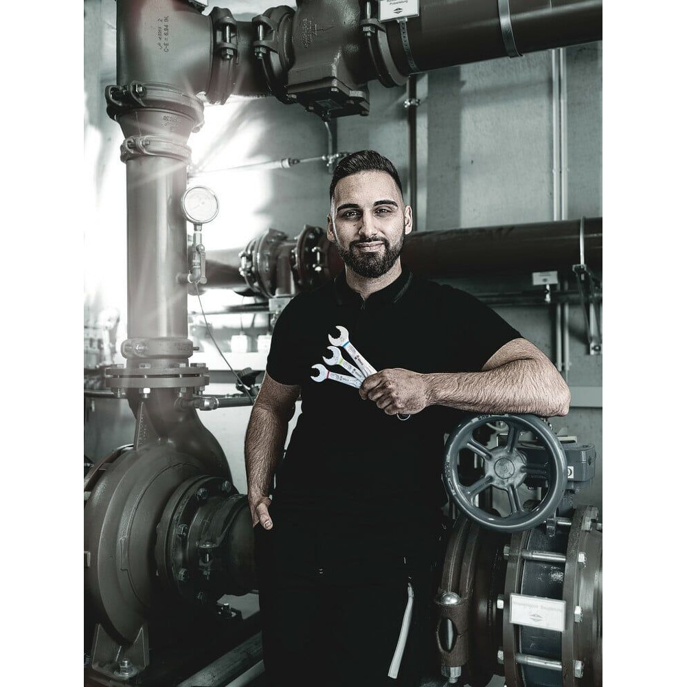 Kľúč Joker so šikovnou geometriou čeľustí rozširuje spektrum použitia v úzkych montážnych priestoroch. Kombinácia čeľustí natočených o 7,5 ° a geometrie dvojitého šesťhranu umožňuje zdvojenie nasadzovacích bodov. Pri opakovanom otáčaní kľúča o 180° okolo pozdĺžnej osi počas skrutkovania existujú štyri možnosti nasadenia a matice alebo hlavy skrutiek je možné "uchopiť" každých 15°. Príslušný nasadzovací bod nájde po každej otočke v podstate sám. Štíhla a napriek tomu robustná očková strana je voči osi náradia posunutá o 15°. Vďaka kvalitnému zošľachteniu povrchu je zaistená vysoká a dlhotrvajúca antikorózna ochrana. S identifikátorom náradia "Take it easy": Farebné označenie podľa veľkostí.